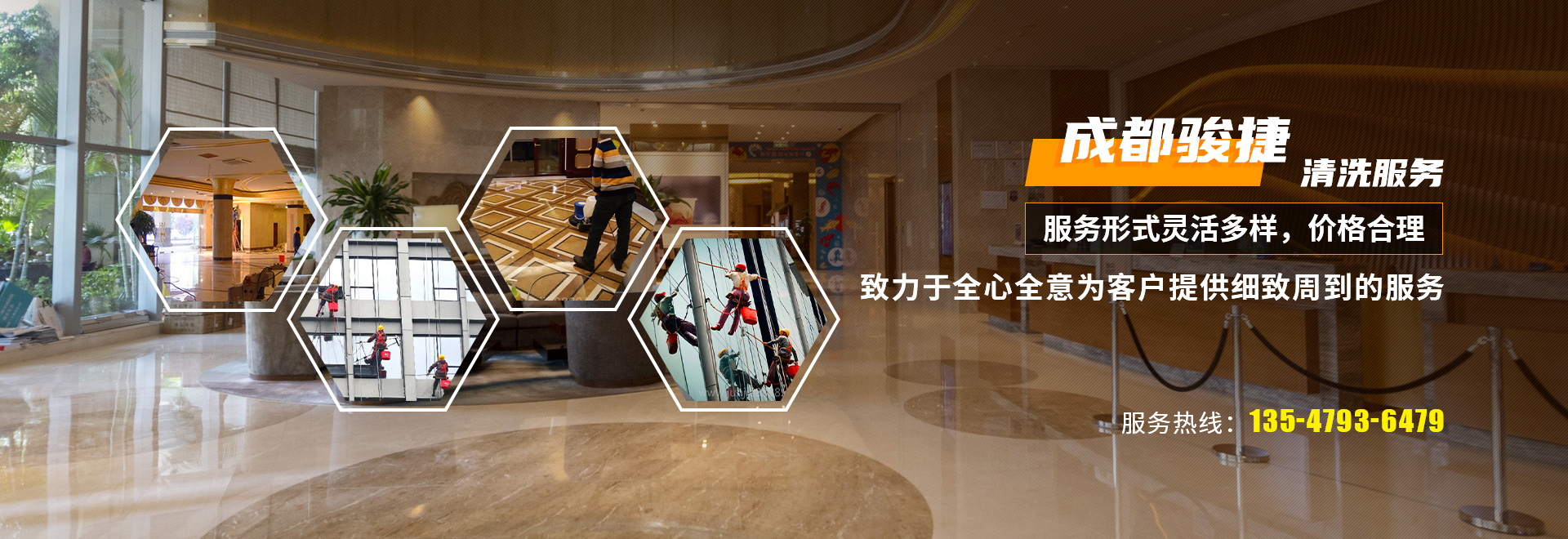 成都駿捷清洗服務有限責任公司是一家經過成都市工商總局正式注冊,擁有合法經營執(zhí)照的正規(guī)企業。專業從事酒店、食堂、學校、機關單位油煙管道清洗,煙道清洗、石材翻新、石材養護、石材打磨+外墻清洗服務的清潔技術公司,我公司將人性化的服務模式及專業的清洗技術融為一體,擁有嚴格的管理制度、設備、服務質量,精湛的技術。清洗維修技師都具備多年清洗、維修、 安裝經驗,并不斷吸收新的技術和檢測設備來滿足廣大客戶的需求。所有的工作人員上崗前都必須經過嚴格的崗前培訓及思想素質的提升,并通過統一的考核方可上崗。公司的服務形式靈活多樣,合理,并全心全意為客戶提供細致周到的服務,客戶的滿意和認可是我們賴以生存的基礎,也是我公司全體員工堅持不懈的追求目標,公司在運營中注重各方面的管理,定期對各崗位員工進行清潔技術培訓,嚴格要求,積極進取,并且不斷完善更加有效的管理體系,不斷創(chuàng)新,不斷前進,以盡善盡美的服務為每一位客戶打造一個健康、潔凈、舒適的美好環(huán)境!